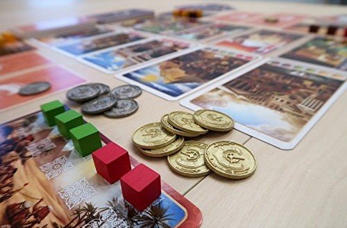 On each turn, players choose from a small set of simple actions, such as gathering spices, upgrading them into more valuable ones, trading them using cards, or completing contracts to score points. As the game progresses, players can acquire new cards that improve their trading abilities, allowing for more powerful combinations and strategies.